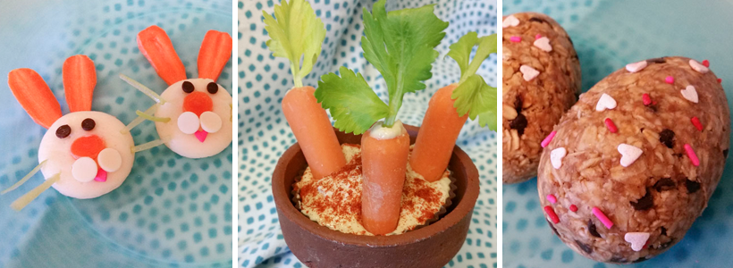 Besides leaving decorated eggs on our lawns, the Easter Bunny is famous for delivering baskets full of sugary treats. As with most holidays, presenting healthy options to your family can be a real challenge. What child would turn in their chocolate egg for some hummus or oatmeal? With a little creativity, you can have your little ones hopping to your healthy snack table.
