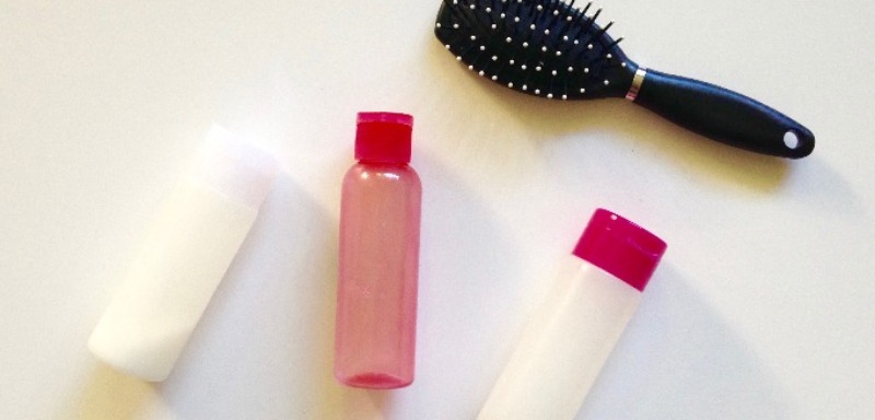 Pack travel-sized beauty products for easy travel. Doing this not only lightens the load, but it’ll also be easier to store at your desk for future use.