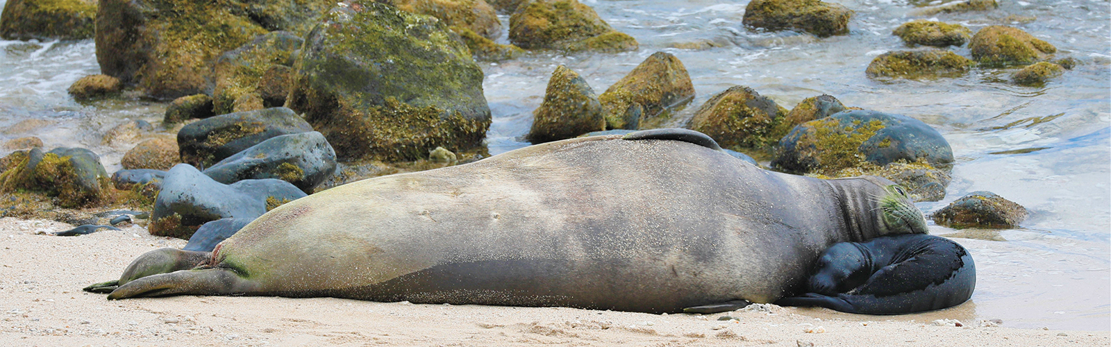 Above photo: Hawaiian monk seal mom with her newborn pup