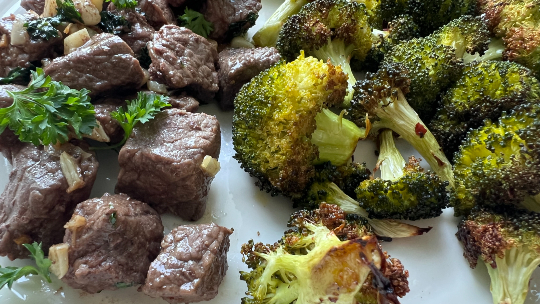 GARLIC STEAK BITES WITH ROASTED BROCCOLI