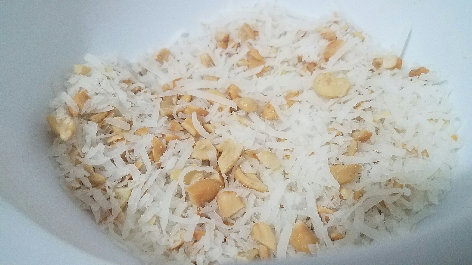 Mix shredded coconut with nuts of your choice together in a small bowl. Melt chocolate bar in 30 second increments in the microwave until melted and mix thoroughly by adding to the bowl of shredded coconut and nuts. Form into cluster shapes or haystacks on parchment paper on a cookie sheet. It will be hard to form "mounds" but it will look better once it freezes. Allow to cool or harden in the freezer. Makes about six macaroons/haystacks.