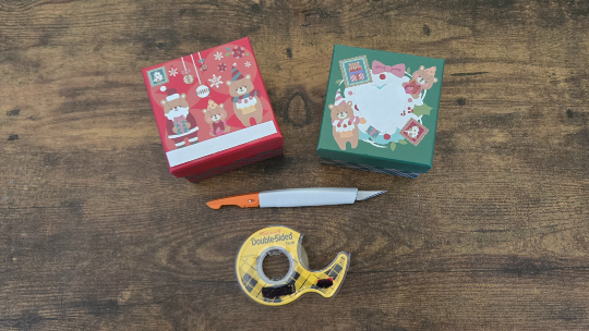 Thrifty tip: As the holidays wind down, boxes are likely to go on sale. Buying a few to have on hand for last-minute gifts might be a good idea. If you can find non-holiday themed boxes, great; if not, you can always cover the sides of the box (individually, so the box can still fall open).