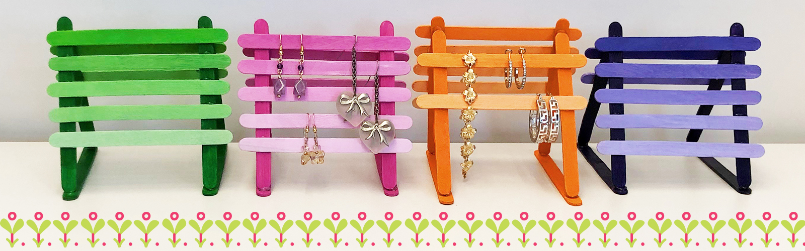 Show mom your love and appreciation this year with a handmade Mother’s Day gift. This DIY earring holder is cute, colorful, and inexpensive. The kids can help paint and decorate the sticks and you can handle the hot glue. This quick and easy craft is perfect for moms who love to organize and display their jewelry.
