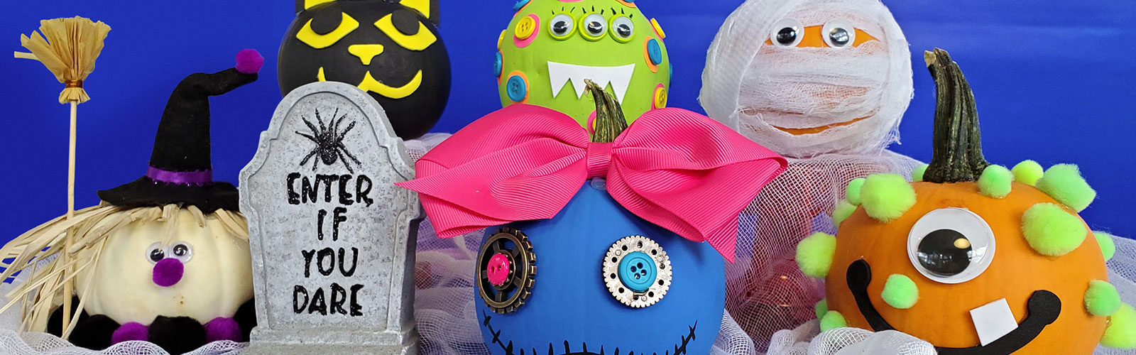 The spooky season is upon us. It’s never too early to start planning for Halloween whether you’re repurposing decorations, preparing festive treats, or catching up on local ghost stories. Carving pumpkins is traditional at Halloween, but how about something a little different this year? With no-carve pumpkin decorating, all you need are a few supplies and your imagination.