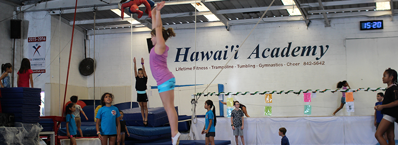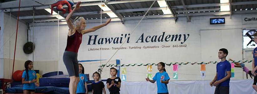 Those who attend more classes and have joined teams tend to be better because of the practice time but it looks like everyone there is having a blast from the novice to advanced. Beginners are just getting used to the equipment and the younger ones are mostly learning to follow directions and basic techniques like tumbling skills. You have to be able to climb a rope up to the ceiling in order to move on to the intermediate courses and eventually more skill to move into advanced groups. Each year Hawaii Academy hosts the Hawaii Ninja Games (for ages 3-11) and the Hawaii Ninja Warrior Championships (for ages 12+), but competition isn’t the overall goal of the Academy. Their mission is promoting lifetime fitness and gymnastics for students of all ages and abilities. Ninja training is just a fun vehicle to get students to higher levels of fitness.