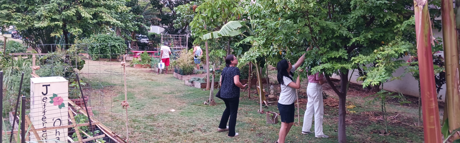 Green space can be limited in cities, but that’s not stopping dozens of people in Waikiki from growing fruits and vegetables. Some residents in high-rise buildings that surround Jefferson Elementary School are beautifying a formerly barren space with fruit trees, vegetables in all stages of growth, and sprouting herbs.