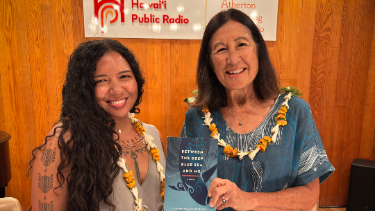 HPR Culture & Arts Reporter Cassie Ordonio with author Lurline McGregor at HPR’s Live from the Atherton. Photo courtesy Sylvia Flores
