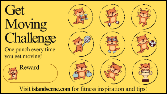 Get moving challenge: One punch every time you hit your fitness goal for the day. It could be 30 minutes of walking, 15 minutes of dancing around your living room, or anything that gets you moving!