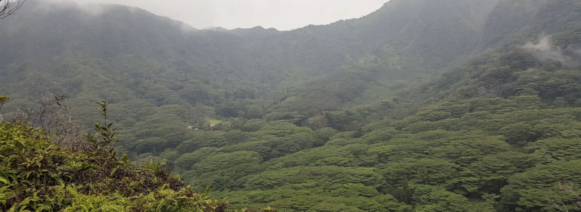 As we started out on the trail, it wasn’t long before we encountered a split. We were sure to choose Pu’u Pia as our path. Kolowalu, also part of the Honolulu Mauka Trail System, has a steep ascent up to Wa’ahila Ridge – definitely not appropriate for our little hikers.