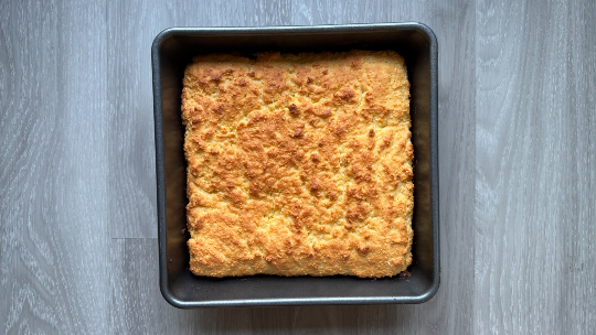 Pour batter into prepared baking dish. Bake 20 minutes, or until edges are golden brown. Makes 8 servings.