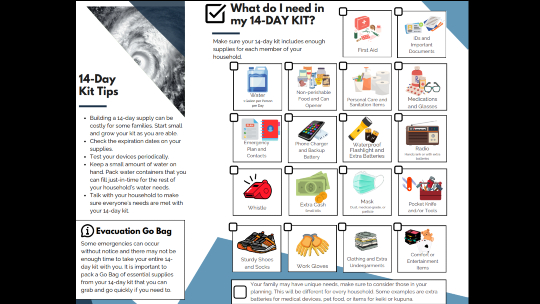 Honolulu’s Department of Emergency Management recommends building a disaster supply kit with enough food and water for at least 14 days. Since we live on an island, we don’t have the option of driving somewhere that hasn’t been impacted by a hurricane or another disaster. Having a 14-day supply for each member of your household is essential, just in case our ports close and can’t accept shipments.