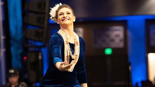Jaedyn Pavao dancing auana. Photo courtesy Greg Heller