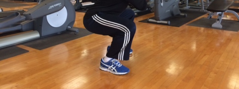 Technique: With your arms crossed over your chest and eyes straight ahead, squat down slowly as low as possible and then back up. Inhale on the way down and exhale on the way up.