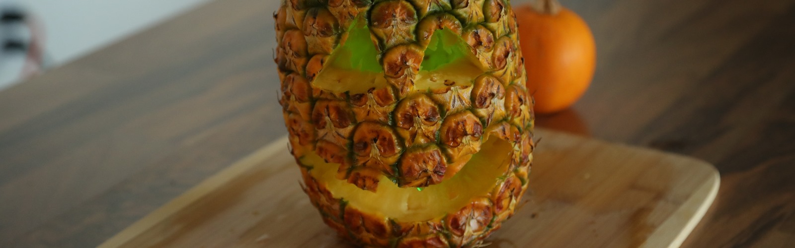 Don’t have your Halloween pumpkin yet? Luckily, there’s an alternative that grows in Hawaii year round and can be found at nearly every major grocery store: pineapple! Pineapples’ spiky exterior make for a spook-tacular experience and you can reserve the fruit to eat, throw in a smoothie, or make one of your favorite pineapple recipes.