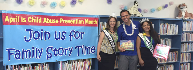 I’ve performed in front of thousands of people all over the world, supporting national acts such as No Doubt and Train. But none of those experiences gave me as many butterflies as when Parents and Children Together (PACT) asked me to be a guest story time reader. As part of Child Abuse Prevention Awareness Month, Family Story Time events are hosted at various libraries around Oahu. Children who attend are treated to a story and a free goodie bag – fun for the kids, terrifying for me.