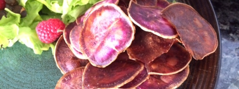 Okinawan sweet potatoes make the perfect chip and pack a powerful purple punch to your health. These terrific tubers are among one of the healthiest foods around and contain antioxidants, and a slew of vitamins and minerals. They also support a strong immune system, improved memory, eye health and digestive heath; and have anti-inflammatory properties. All this, and they taste amazing!