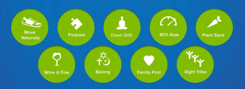 The Power 9: You, too, can boost your own well-being by applying the Power 9 Principles to your daily life. These are easy tips you can live by to help you get the most enjoyment out of life. The great news is, you don’t have to take on all nine of these lifestyle behaviors at once to enjoy their benefits. After all, improving your well-being is not about adding more to your “to do list”, or restricting yourself to “do this, not that”. It’s about simplifying and doing the little things that add more meaning to your life – like slowing down, spending time with the people you love, eating foods that give you energy, and doing activities you enjoy.