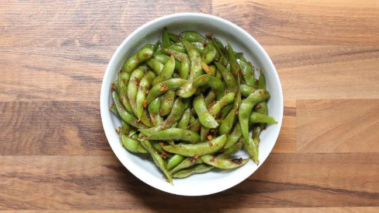 spicy soy-glazed edamame