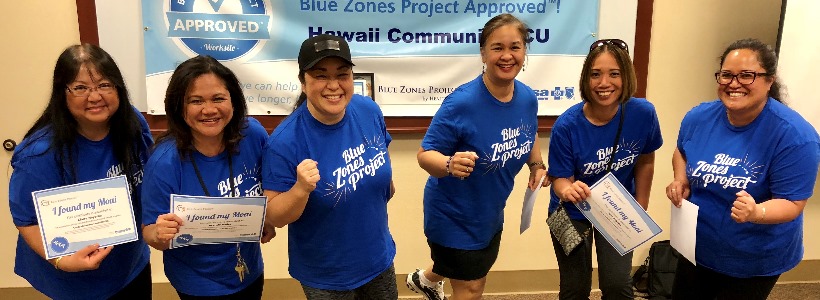 Hawaii Community Federal Credit Union (HCFCU) has completed the first Walking Moai® program in West Hawaii! Walking Moai groups are formed through Blue Zones Project® as a way for people to gather socially and do something active. HCFCU’s Kaloko Branch became a Blue Zones Project Approved™ worksite in November 2017. Since then, 13 women in two teams walked weekly during the 10-week walking moai program. Although the official walking period has ended, they continue to walk regularly. After regular comments from moai members about their clothes fitting better each week, everyone has been motivated to continue their group. Additionally, everyone in the group agrees that it's been a great way to connect with co-workers that they otherwise do not spend much time with.